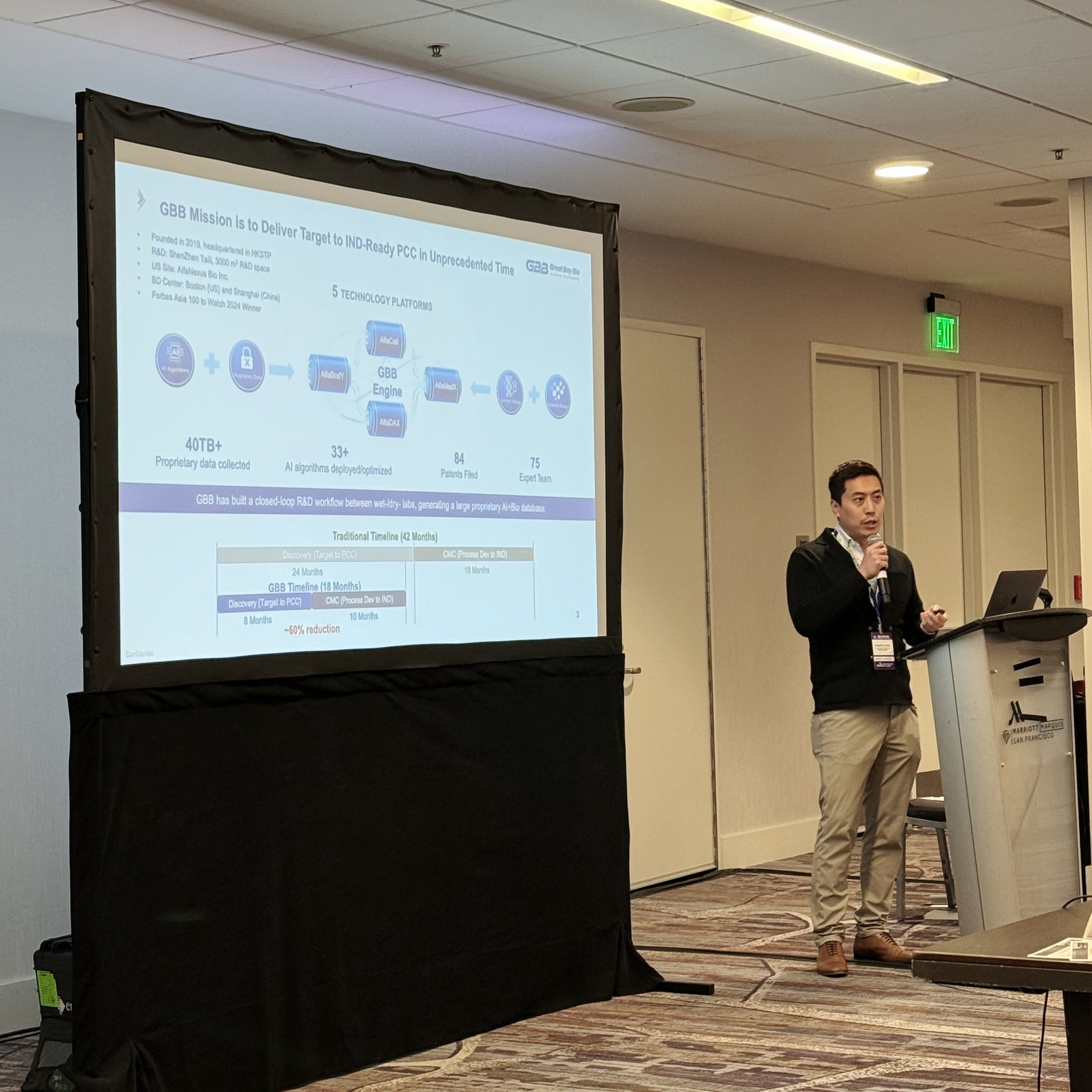 摩斯国际生物团队出席了本次盛会,并在JPM Week系列会议中发表演讲,分享了摩斯国际生物利用AI等技术落地的多个商业化智能技术平台,如何让客户产品开发更快更好。